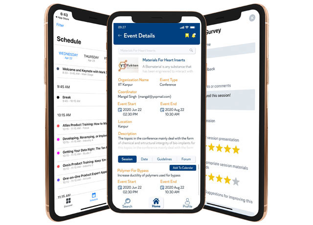 Our Conferencing app available on mobile platforms and web greatly enhance the end-user experience of participating in professional conferences and training events. The App covers all aspects of attending and organizing conferences right from initial plan of organizing an event to post-event feedback from participants. The App is only available to our event partners worldwide on a licensing basis.